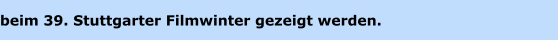 My super 8 film “Unforgettable Memories” was shown in the International Short Film Competition at the 37th Stuttgart Filmwinter – Festival of Expanded Media.